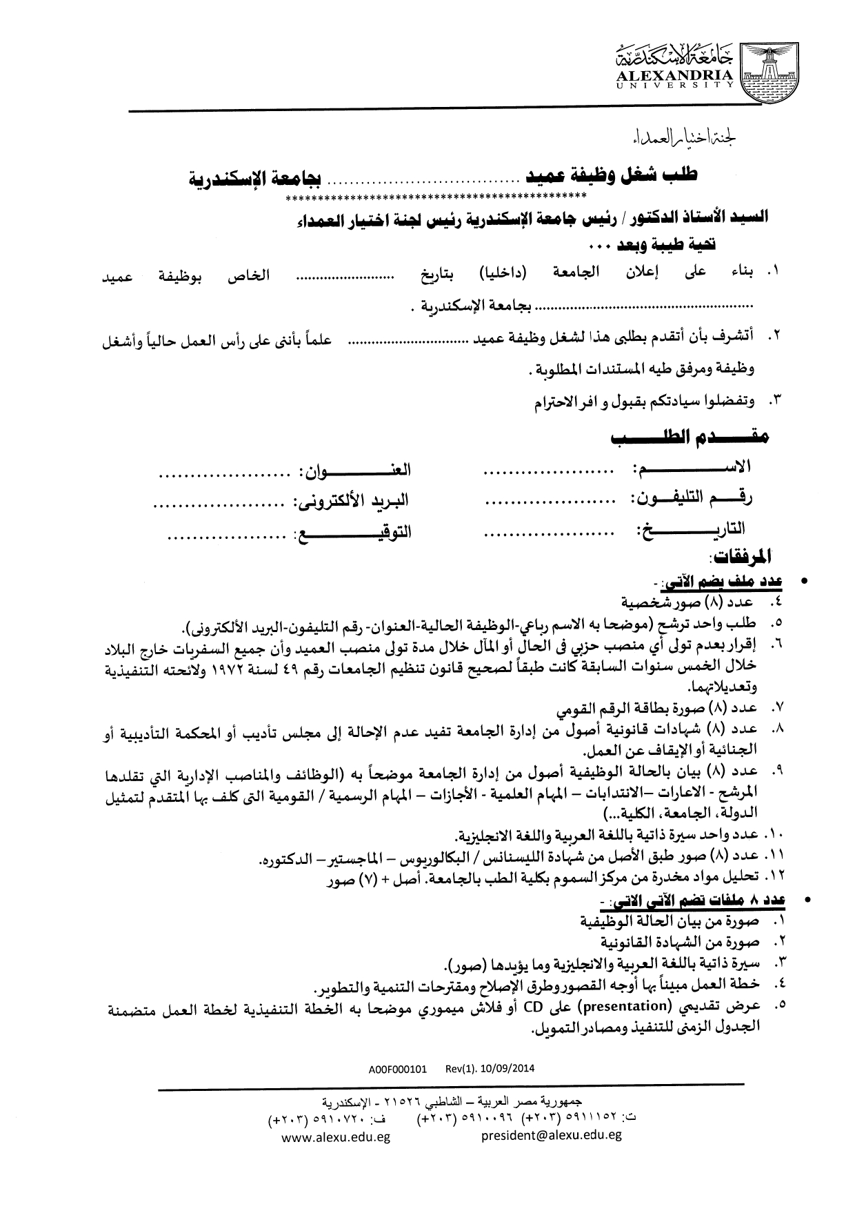 جامعة الاسكندرية تعلن عن قرب خلو منصب عميد كلية العلوم