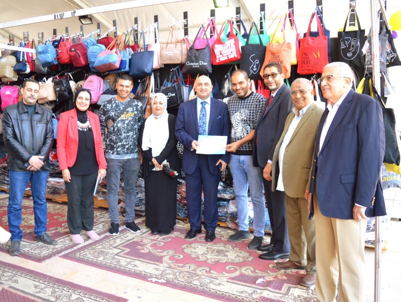 Dr. El-Sayed El-Saifi, Dean of the Faculty of Commerce, inaugurated the charity bazaar organized by the faculty for students under the auspices of Professor Dr. Abdel Aziz Konsowa, President of Alexandria University, and in cooperation with the Faculty's Alumni Association. Its activities will continue until December 20. The bazaar includes scientific and historical books, leather crafts, various handicrafts, and accessories sold at cost. The Dean of announced that the proceeds from the sale of these products will be donated to support the Fund for the Needy Students at the faculty.