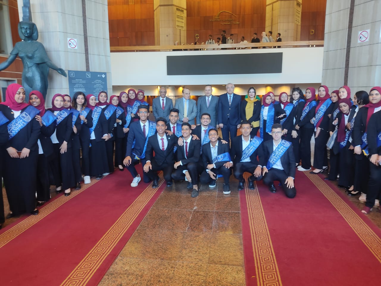 Professor Dr. Abdelaziz Konsowa, President of Alexandria University, witnessed today, Tuesday May 7, 2024, an educational seminar entitled “Egyptian National Security Strategy to Confront the Challenges Egypt is Facing Now,” which was organized by the Alumni Association of the Faculty of Business, Alexandria University, and delivered by Staff Major General Dr. Samir Farag, the military strategist and former governor of Luxor. The event was attended by Dr. Saeed Allam, Vice President of the University for Community Service and Environmental Development Affairs, Dr. Ali Abdelmohsen, Acting Vice President of the University for Education and Student Affairs, Dr. Elsayed Elsiefy, Dean of the Faculty of Business at Alexandria University, Dr. Ahmed El-Gharbawi, the seminar coordinator and member of the Alumni Association, and Ms. Ayat El-Haddad, member of the People’s Assembly, as well as a group of deans, vice deans, and students of Alexandria University’s faculties and institutes.